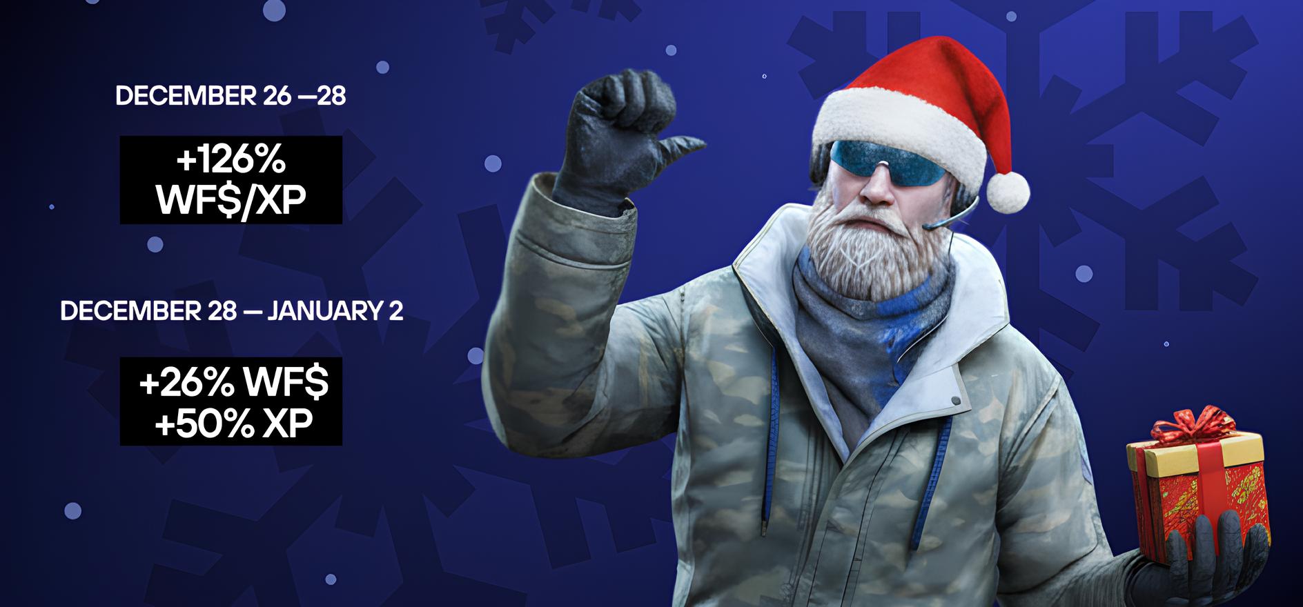 • Enjoy +126% WF$ and XP from December 26th to 28th and make the most of every match.